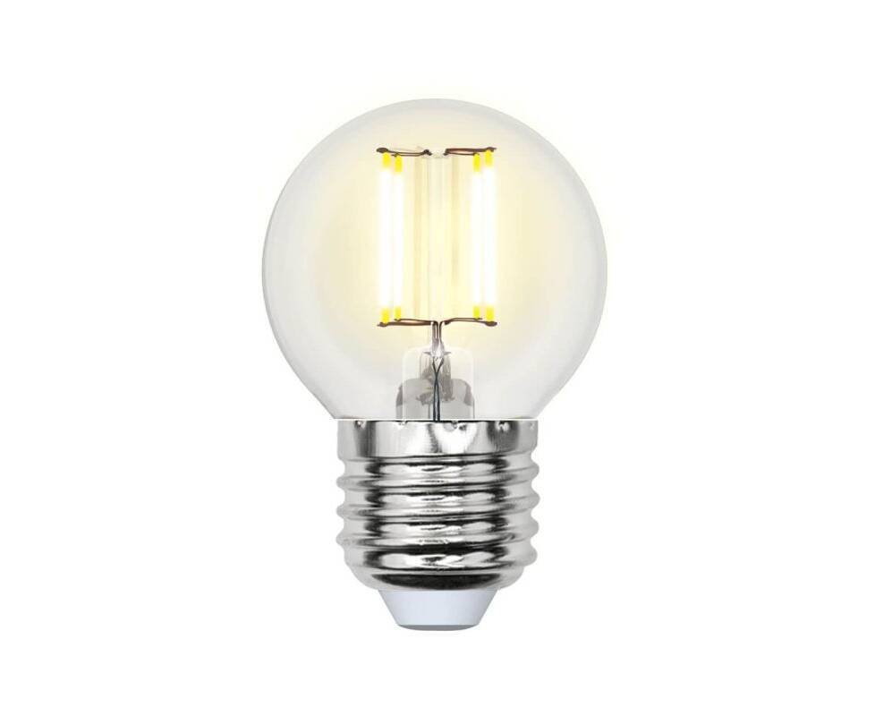 Лампа светодиодная филаментная Uniel E27 5W 3000K прозрачная LED-G45-5W/WW/E27/CL/MB GLM10TR
