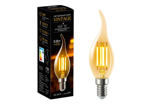 Лампа светодиодная филаментная Volpe E14 5W Свеча на ветру янтарная LED-CW35-5W/AMBER/E14/VLF UL-000