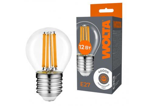Лампа светодиодная филаментная WOLTA 12Вт 4000K Е27 шар прозрачный WF-G45-12W4KE27