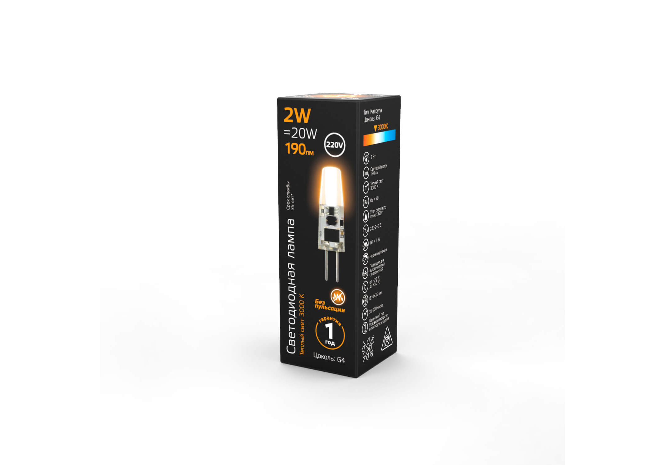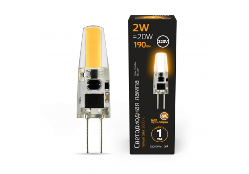 Лампа светодиодная Gauss G4 2W 3000K прозрачная 107707102