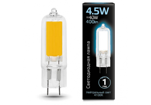 Лампа светодиодная Gauss G4 4.5W 4100K прозрачная 107807204