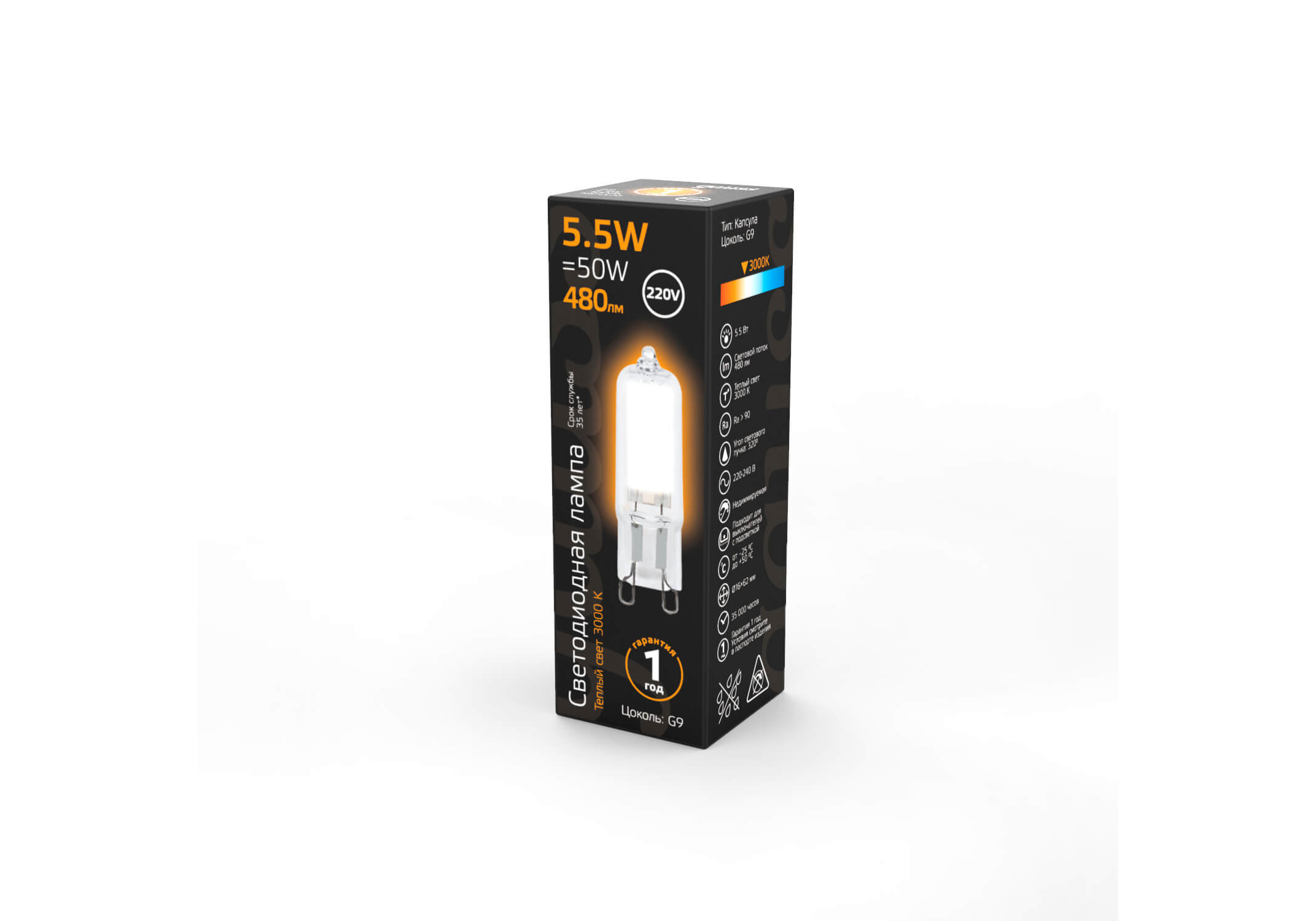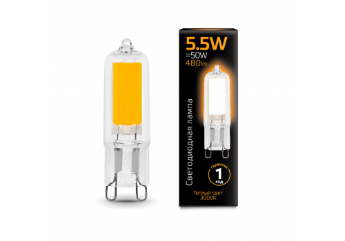 Лампа светодиодная Gauss G9 5.5W 3000K прозрачная 107809105