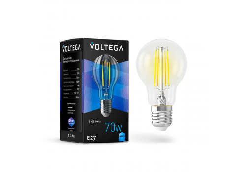 Лампа светодиодная Voltega E27 7W 4000K прозрачная VG10-A60E27cold7W-F 7141