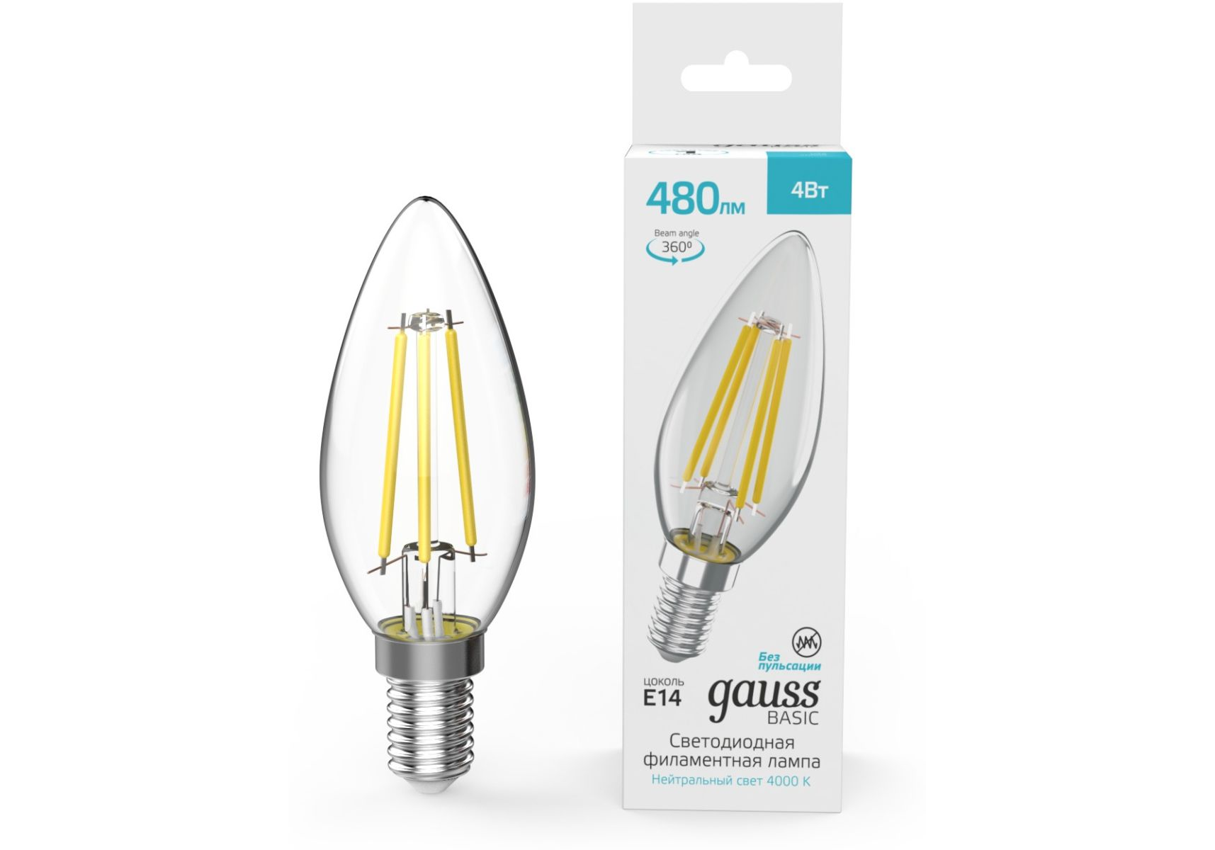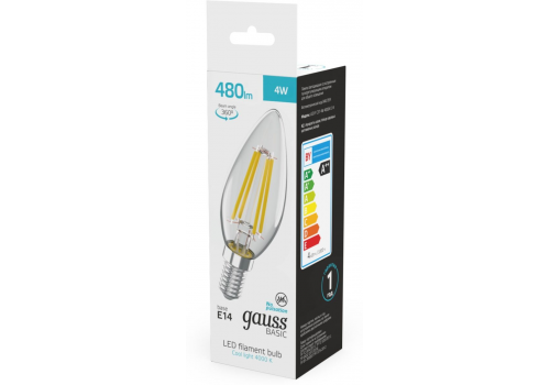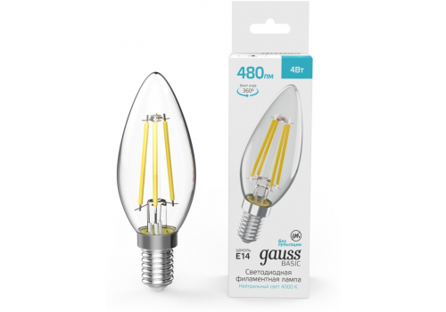 Светодиодная филаментная лампа Gauss Basic Filament E14 4W 4000K свеча 50312242