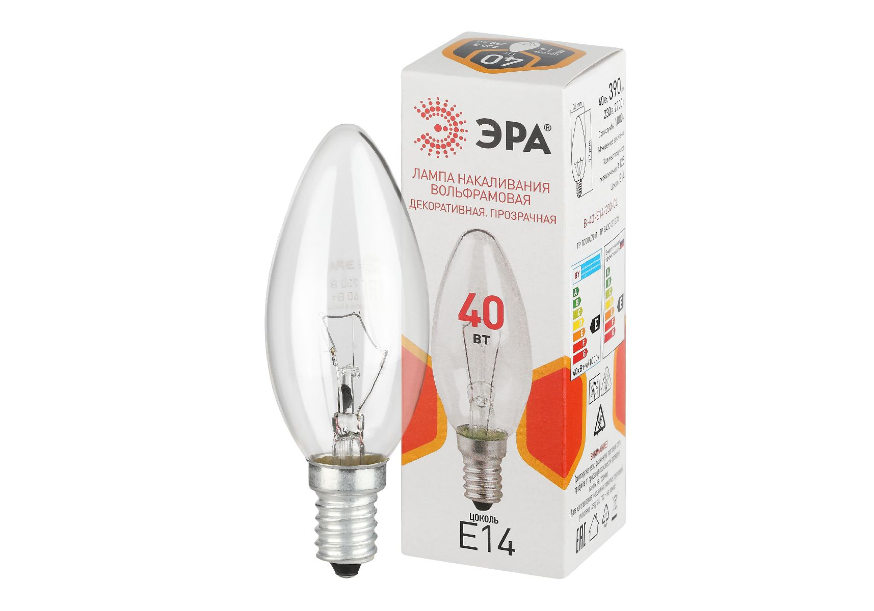 Лампа накаливания Эра B-40-E14-230-CL свечка Б0066509
