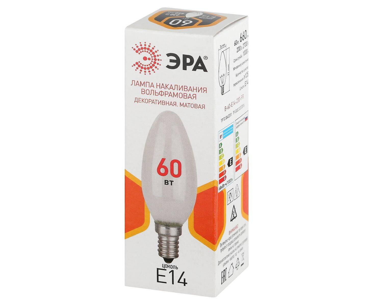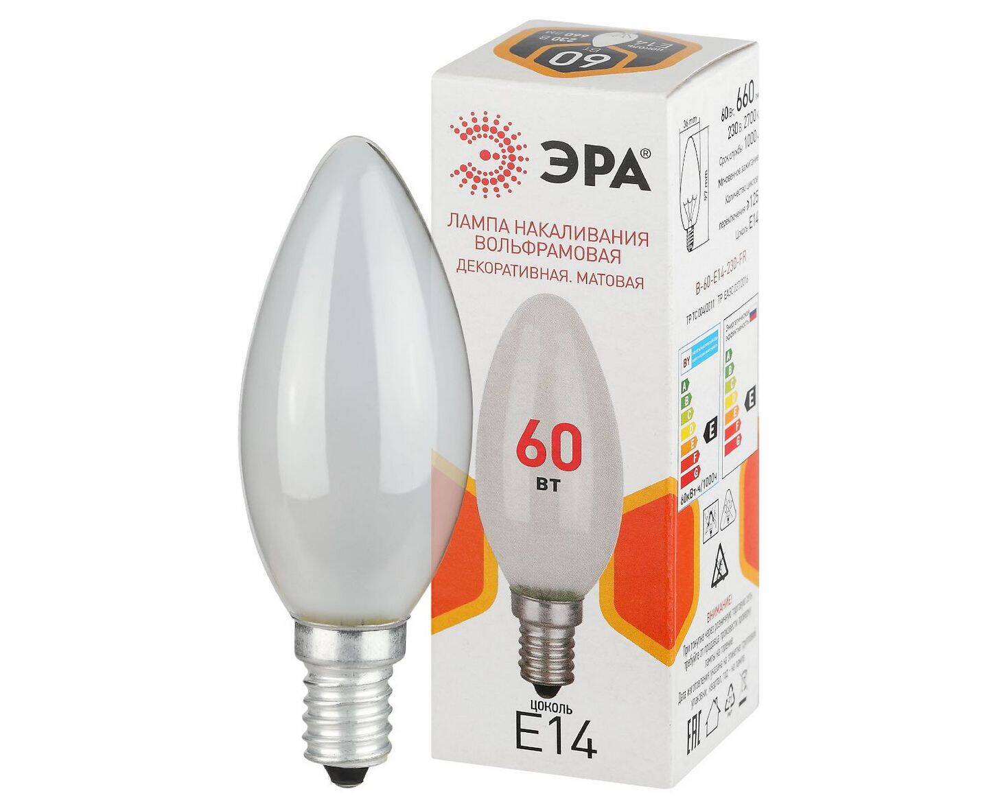 Лампа накаливания Эра B-60-E14-230-FR свечка Б0066376