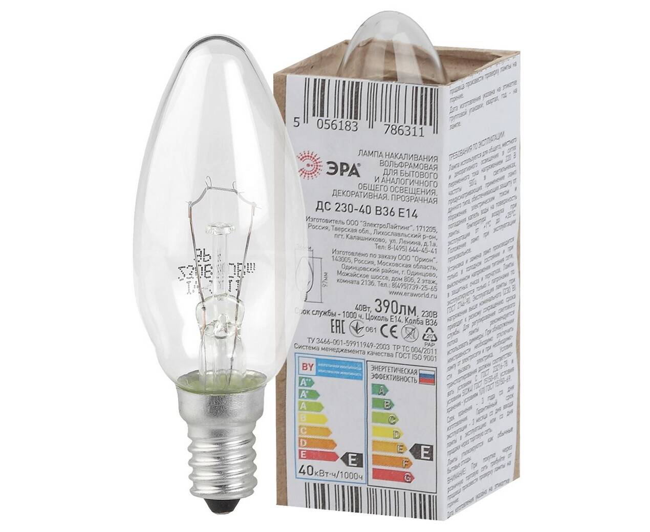 Лампа накаливания Эра E14 40W ДС 40-230-Е14 (гофра) Б0039125