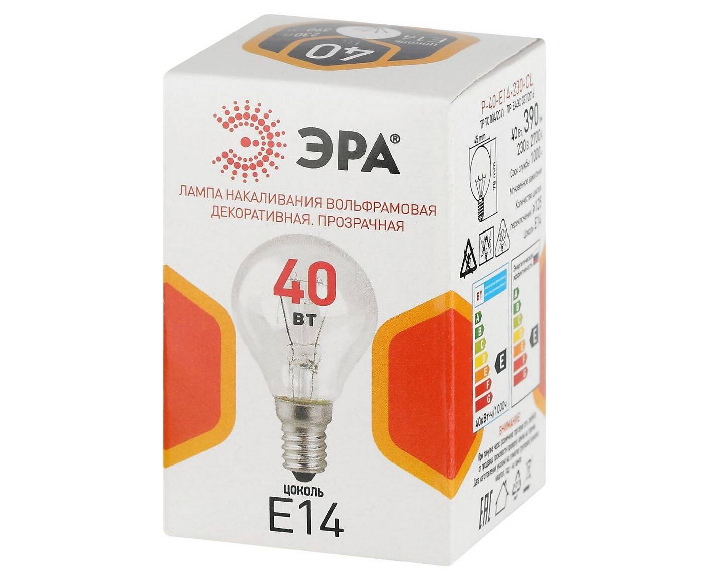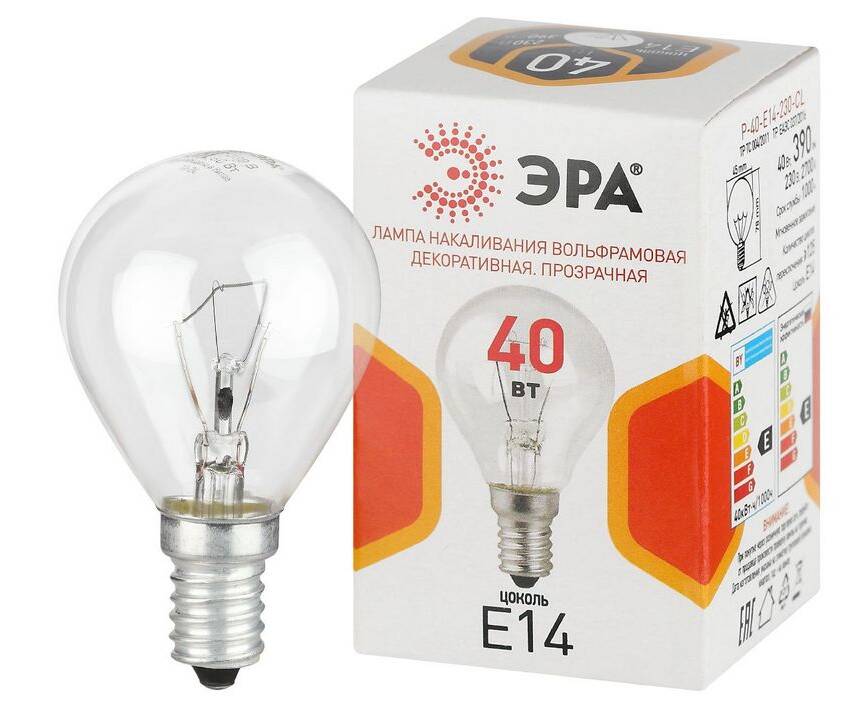 Лампа накаливания Эра P-40-E14-230-CL шар Б0066547