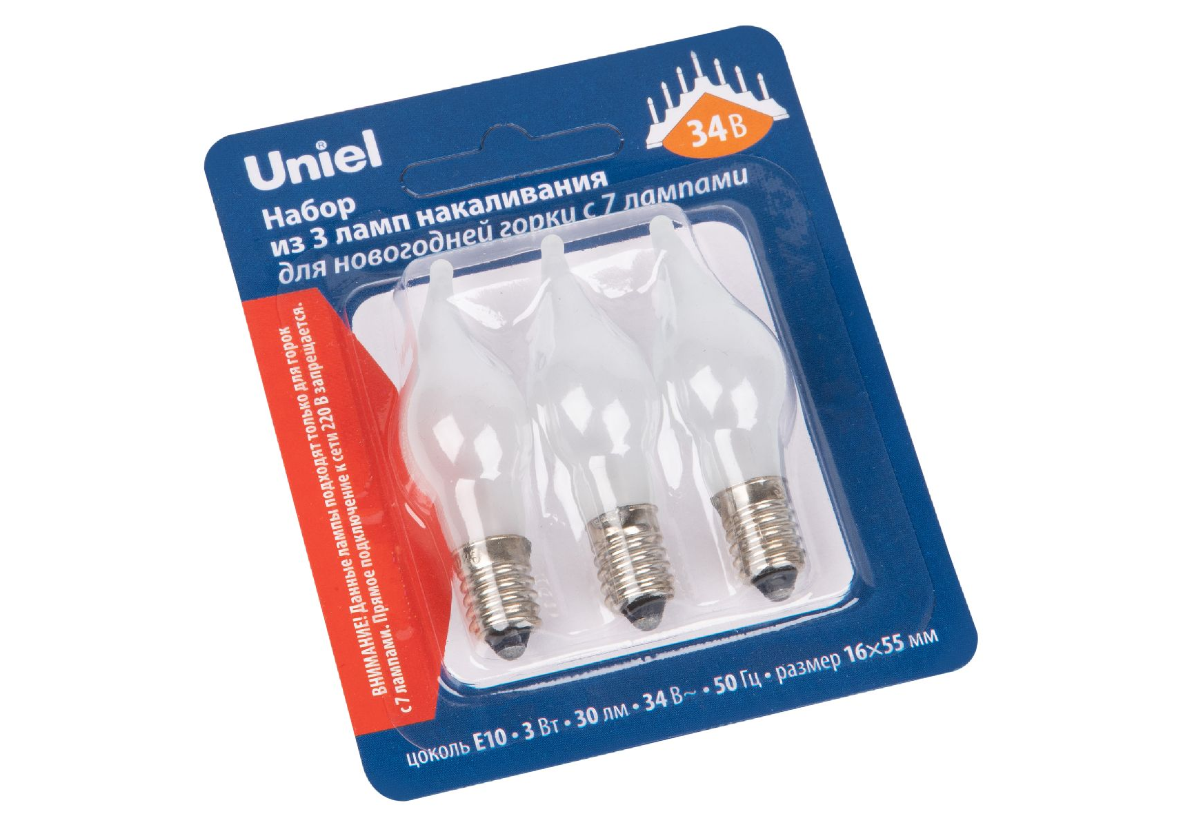 Лампа накаливания Uniel IL-CW16-FR-03/E10/34V SET3 BLISTER UL-00010987