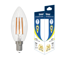 Лампа светодиодная филаментная (UL-00002199) Uniel E14 6W 3000K прозрачная LED-CW35-6W/WW/E14/CL GLA