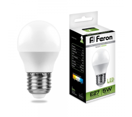 Лампа светодиодная Feron E27 5W 4000K Шар Матовая LB-38 25405