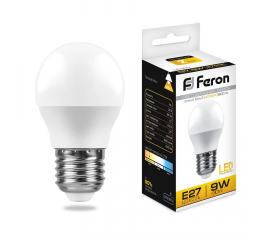 Лампа светодиодная Feron E27 9W 2700К Шар Матовая LB-550 25804