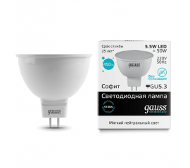 Лампа светодиодная Gauss GU5.3 5.5W 4100K матовая 13526