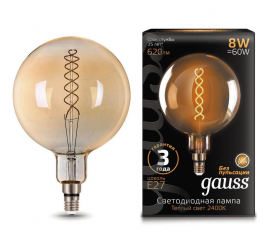 Лампа светодиодная филаментная Gauss E27 8W 2400K золотая 154802008