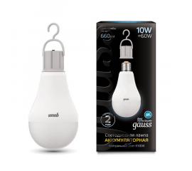 Лампа светодиодная аккумуляторная Gauss E27 10W 4100K матовая 102402200