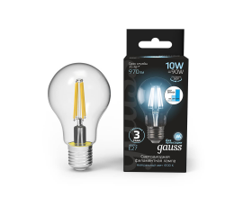 Лампа светодиодная филаментная диммируемая Gauss E27 10W 4100K прозрачная 102802210-S
