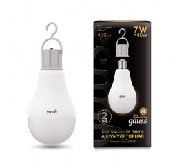 Лампа светодиодная аккумуляторная Gauss E27 7W 3000K матовая 102402107