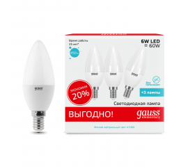 Лампа светодиодная Gauss E14 6W 4100K матовая 33126T