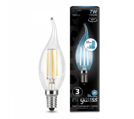 Лампа светодиодная филаментная диммируемая Gauss E14 7W 4100K прозрачная 104801207-S