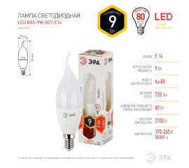 Лампа светодиодная Эра E14 9W 2700K LED BXS-9W-827-E14 Б0027973