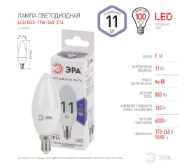 Лампа светодиодная Эра E14 11W 6000K LED B35-11W-860-E14 Б0032984