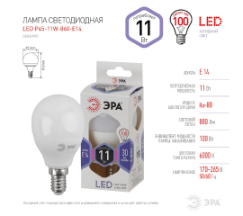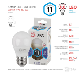 Лампа светодиодная Эра E27 11W 4000K LED P45-11W-840-E27 Б0032989