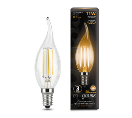Лампа светодиодная филаментная Gauss E14 11W 2700К прозрачная 104801111