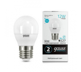 Лампа светодиодная Gauss E27 12W 4100K матовая 53222
