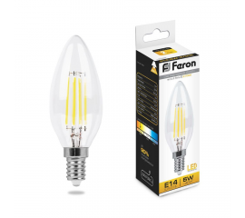 Лампа светодиодная филаментная Feron E14 5W 2700K Свеча Прозрачная LB-58 25572