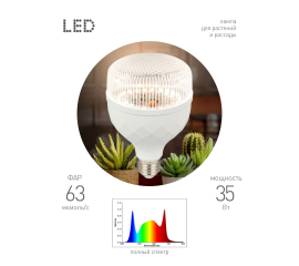 Светодиодная фитолампа для растений Эра ФИТО-35W-PFR-E27-GR Б0064576