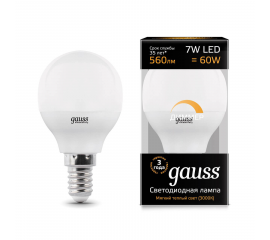 Лампа светодиодная диммируемая Gauss E14 7W 3000K матовая 105101107-D