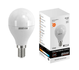Лампа светодиодная Gauss E14 6W 3000K матовая 53116