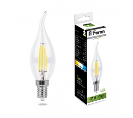Лампа светодиодная филаментная Feron E14 5W 4000K Свеча Прозрачная LB-58 25573