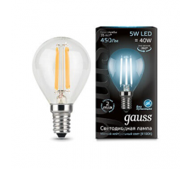 Лампа светодиодная филаментная Gauss E14 5W 4100K прозрачная 105801205