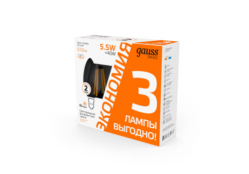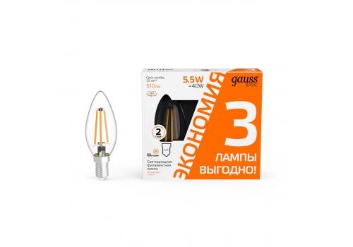 Лампа cветодиодная Gauss E14 5,5W 2700K прозрачная 3 шт. 1031116T