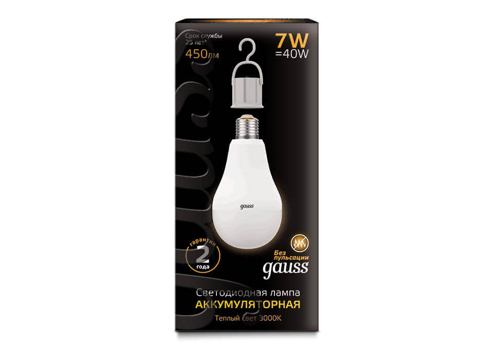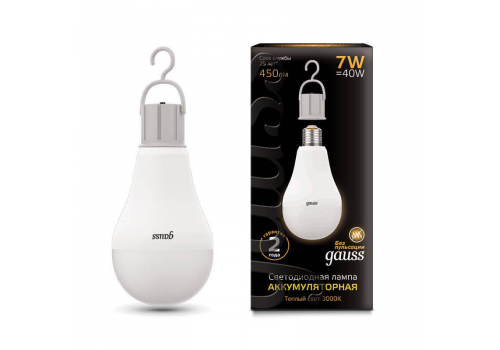 Лампа светодиодная аккумуляторная Gauss E27 7W 3000K матовая 102402107