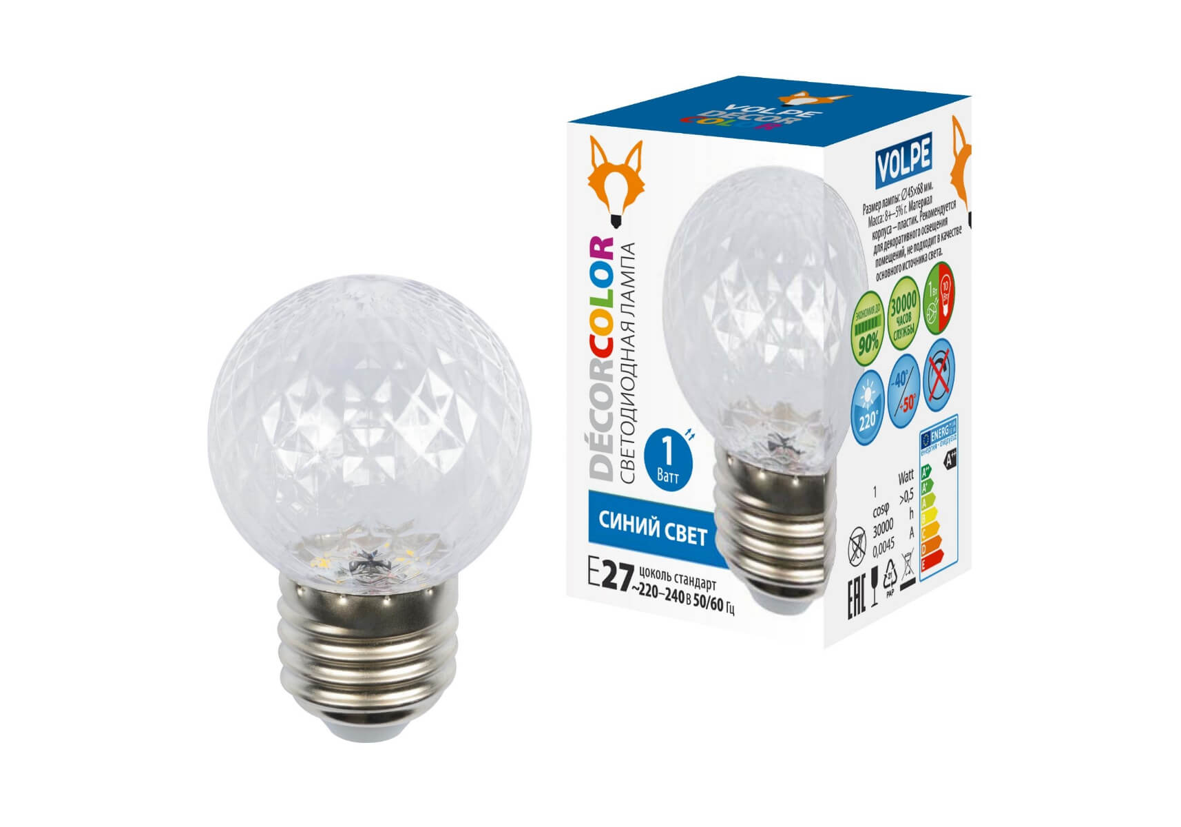 LED-D45-1W/BLUE/E27/CL/С PINEAPPLE