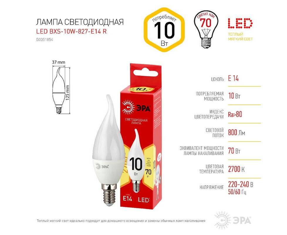 Лампа светодиодная Эра E14 10W 2700K LED BXS-10W-827-E14 R Б0051854