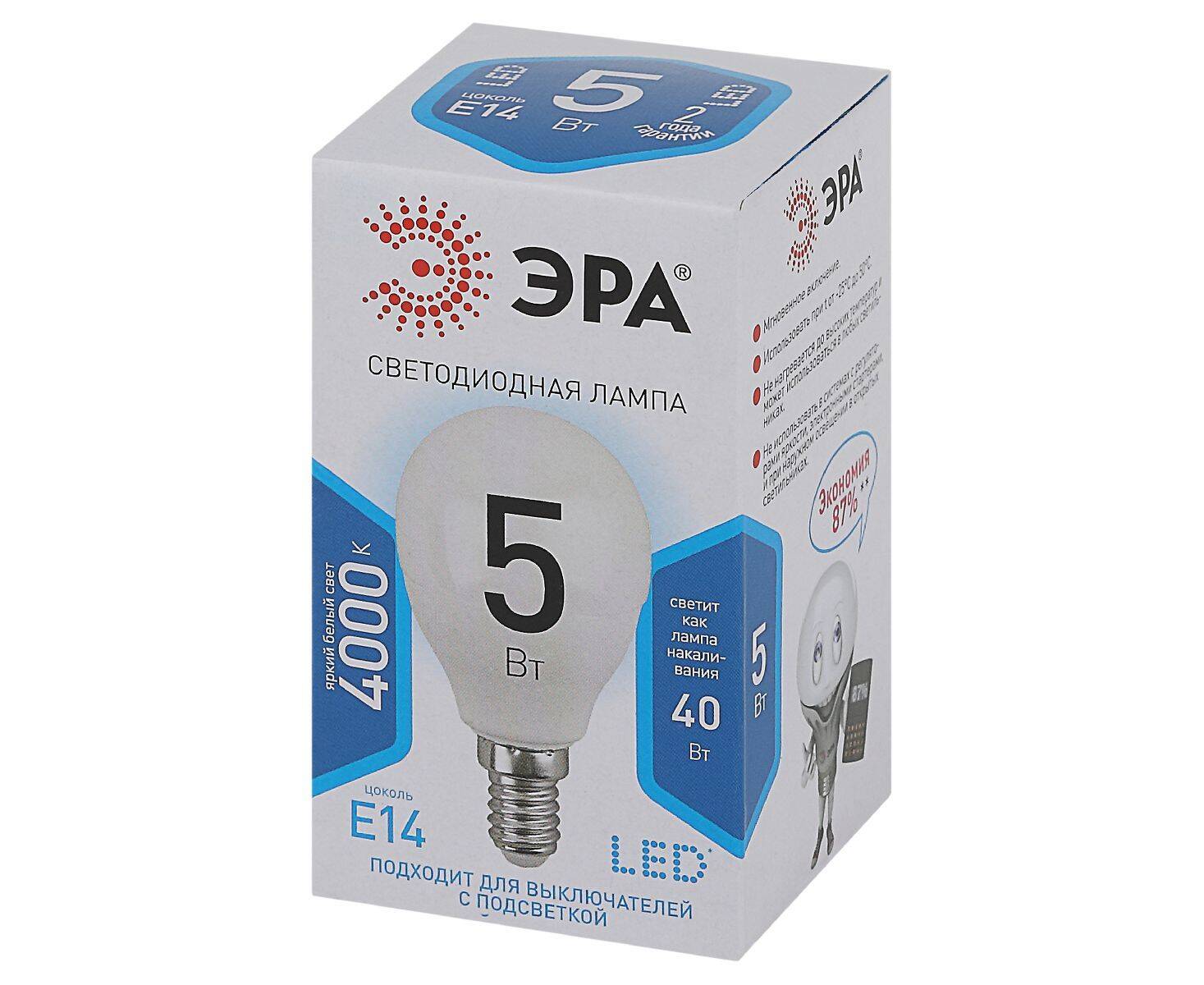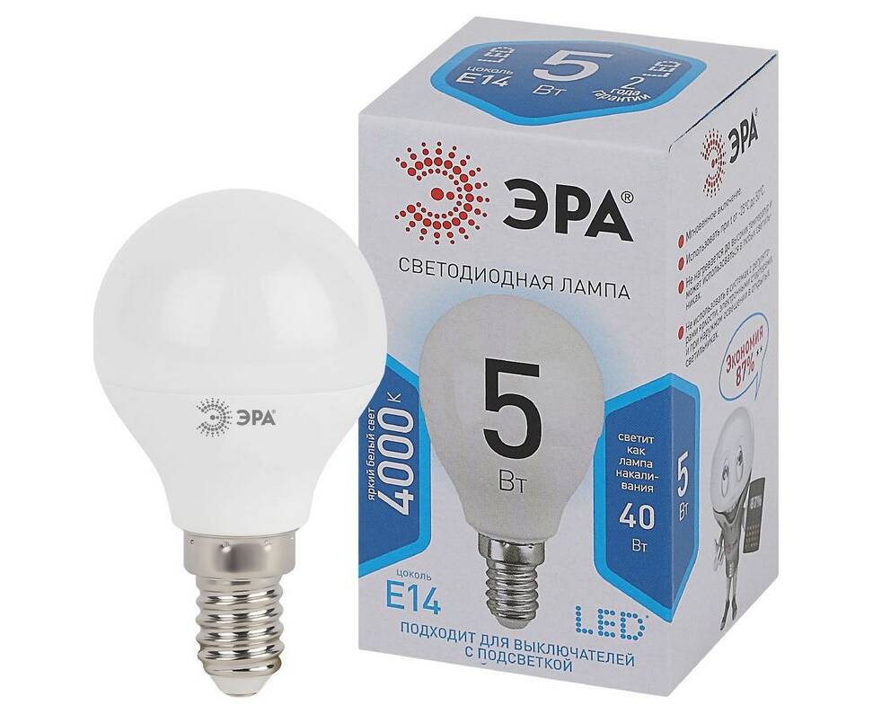 Лампа светодиодная Эра E14 5W 4000K LED P45-5W-840-E14 Б0028487