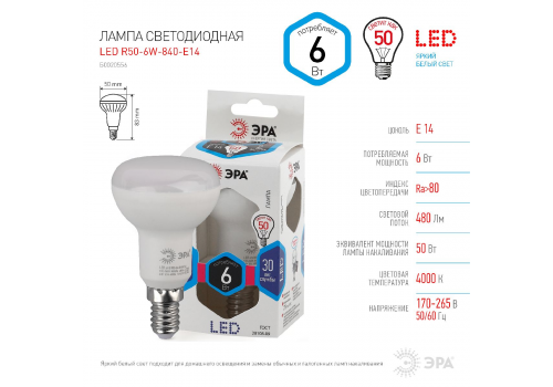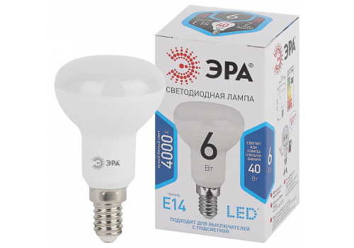 Лампа светодиодная Эра E14 6W 4000K LED R50-6W-840-E14 Б0020556