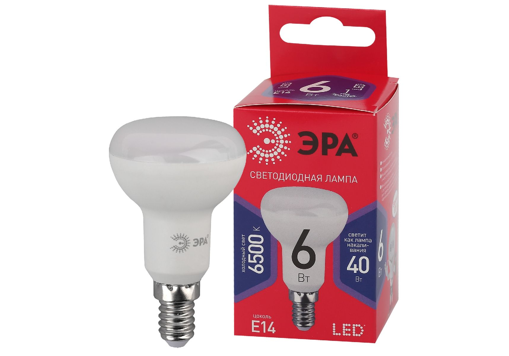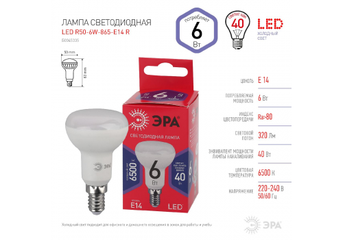 Лампа светодиодная Эра E14 6W 6500K LED R50-6W-865-E14 R Б0045335