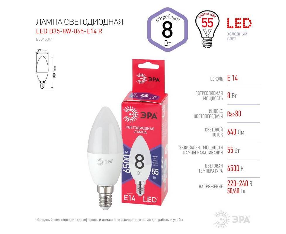 Лампа светодиодная Эра E14 8W 6500K LED B35-8W-865-E14 R Б0045341