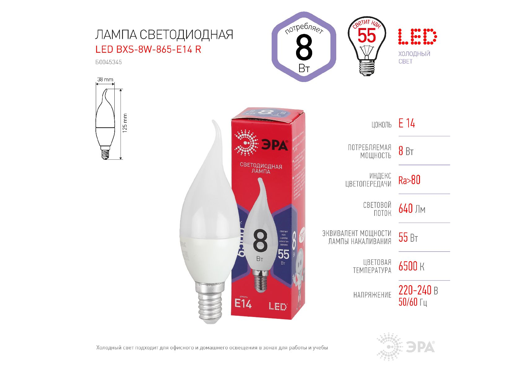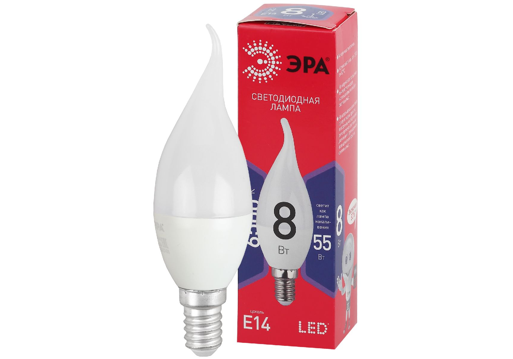 Лампа светодиодная Эра E14 8W 6500K LED BXS-8W-865-E14 R Б0045345