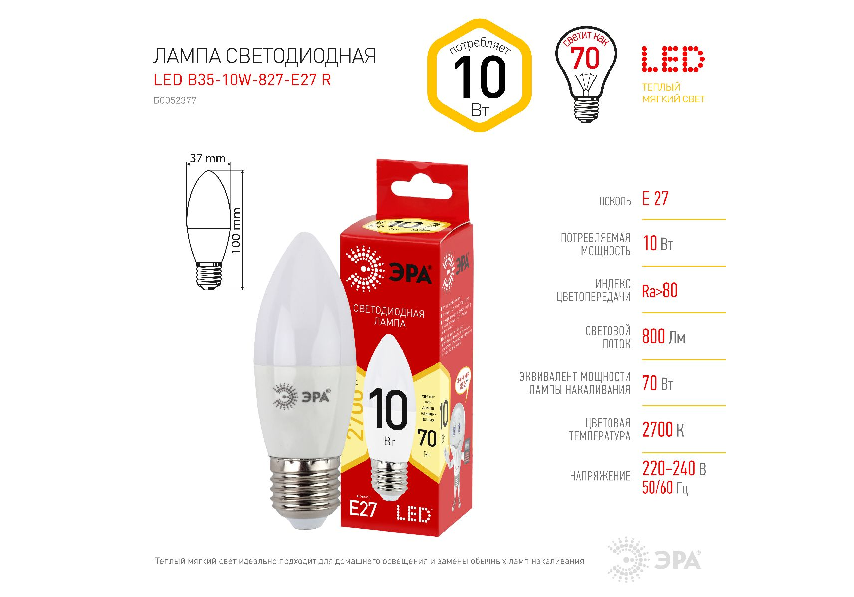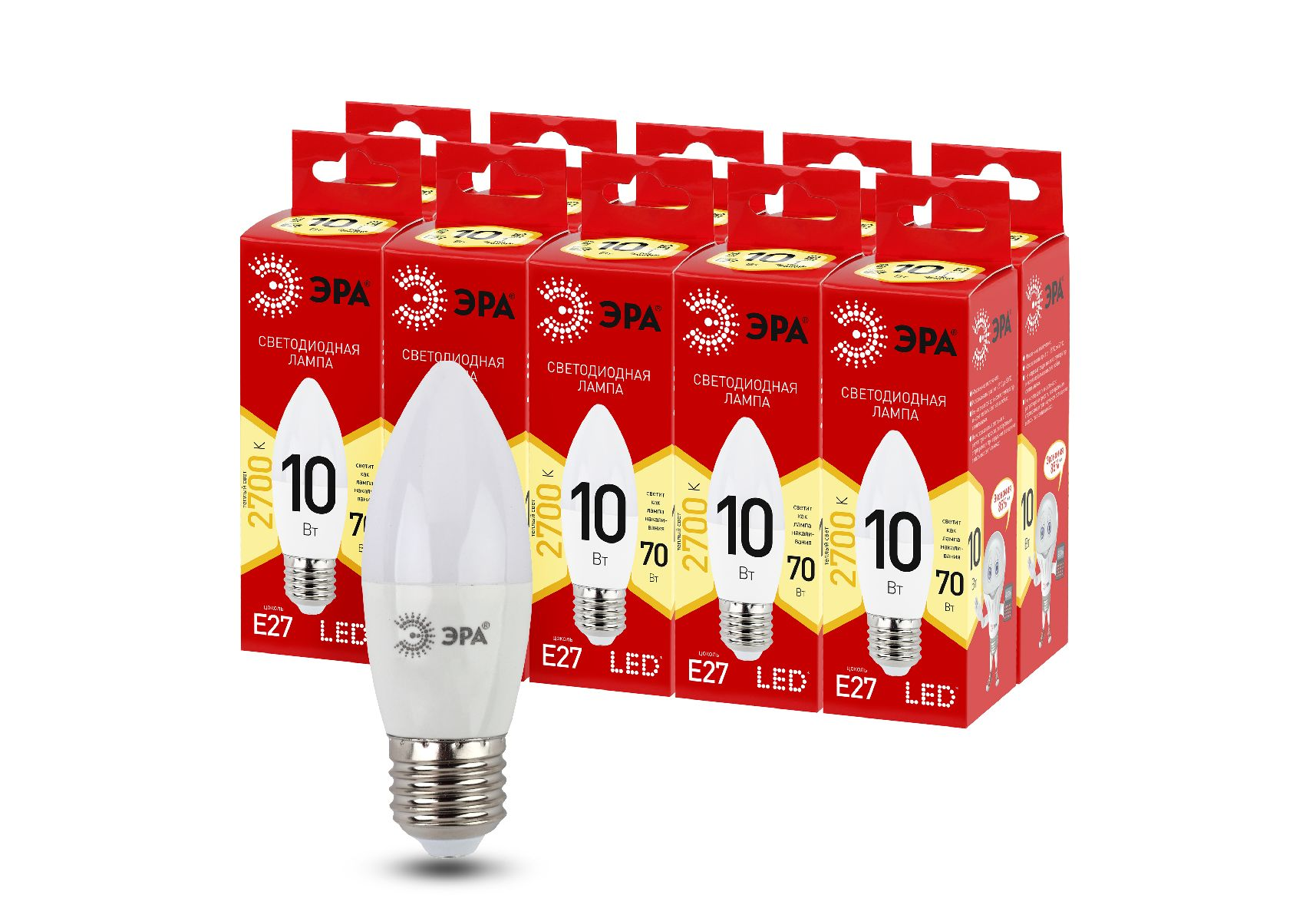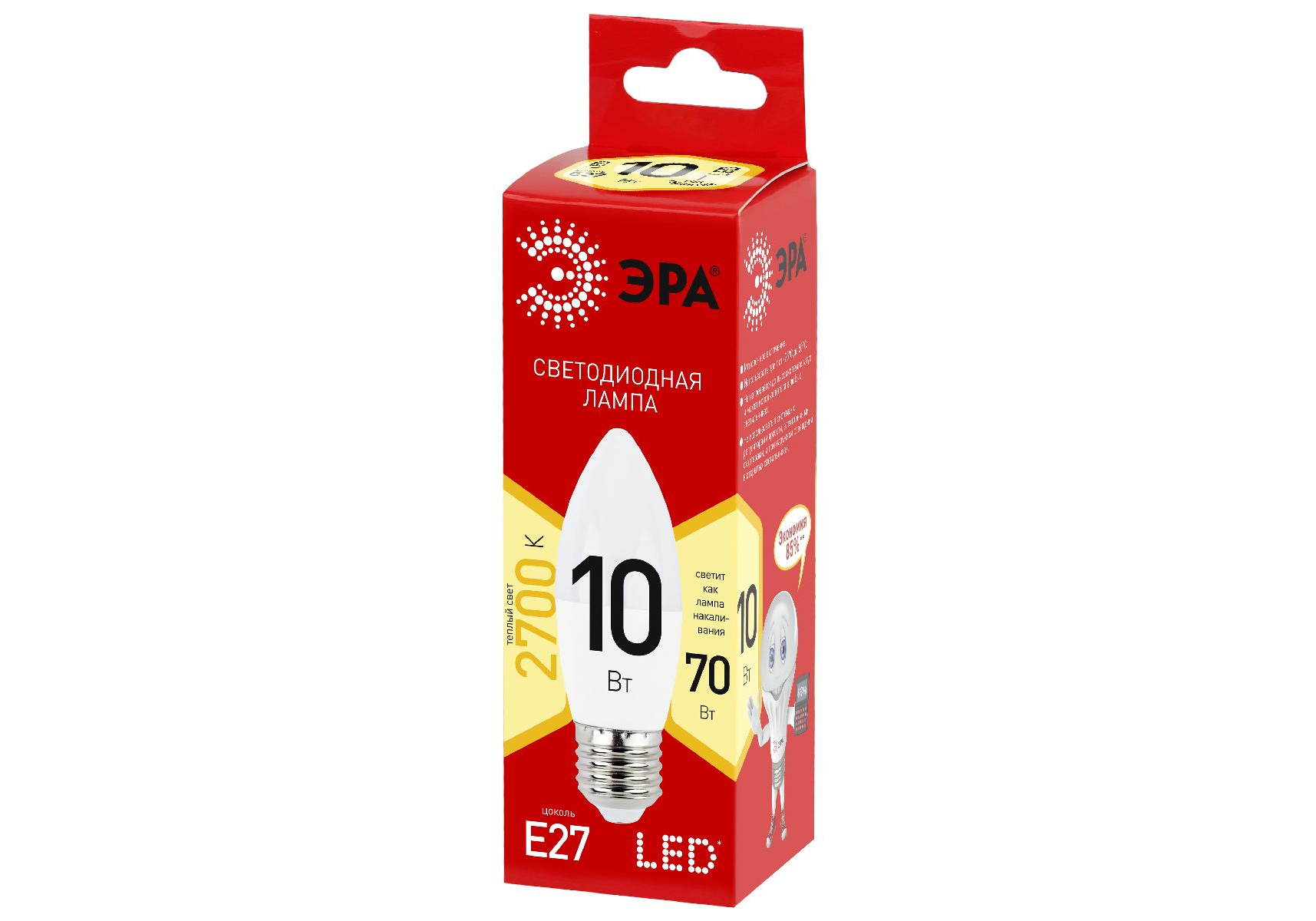 Лампа светодиодная Эра E27 10W 2700K LED B35-10W-827-E27 R Б0052377