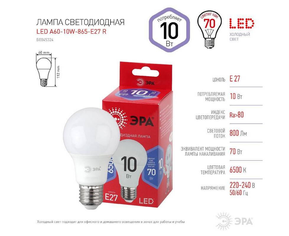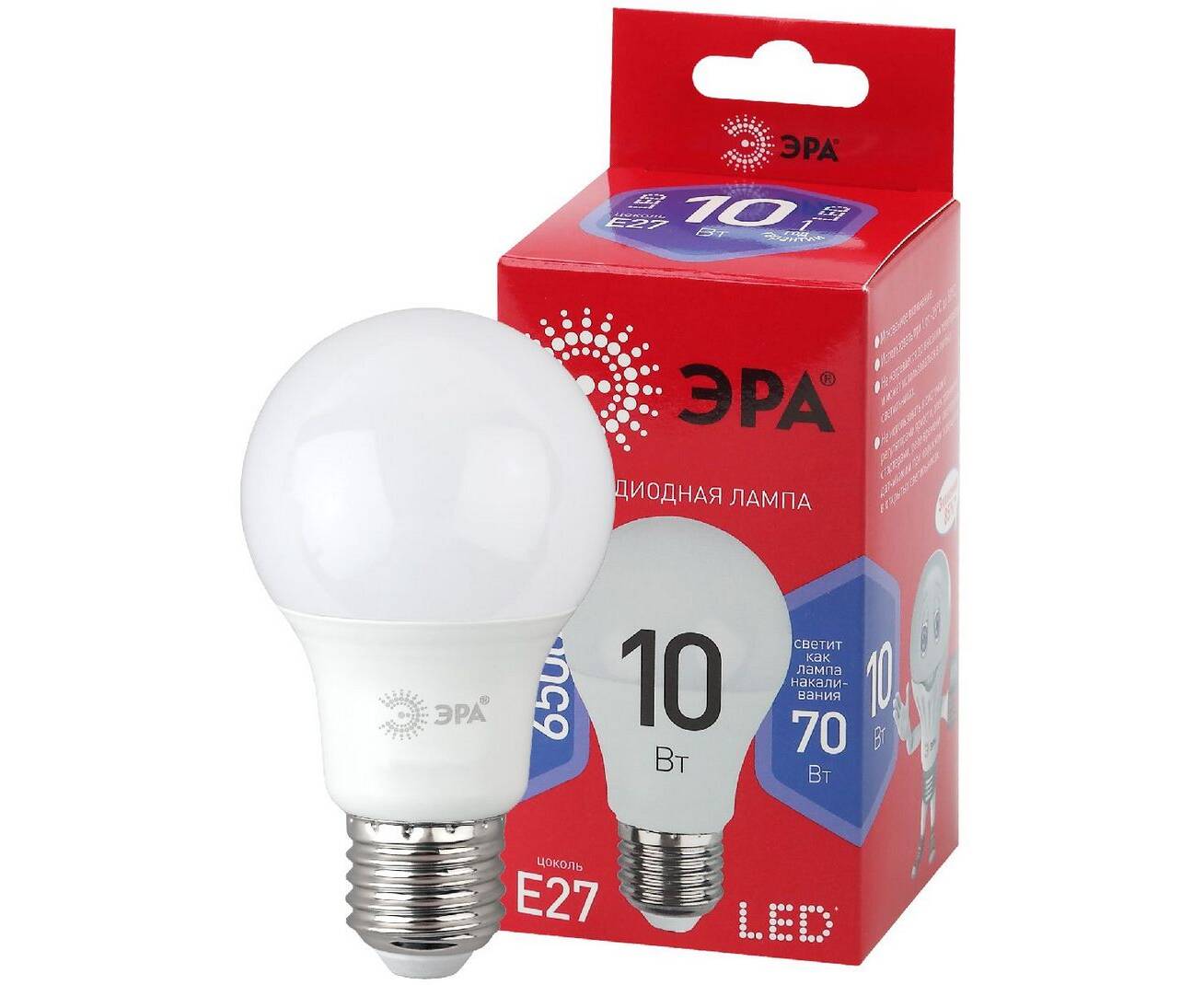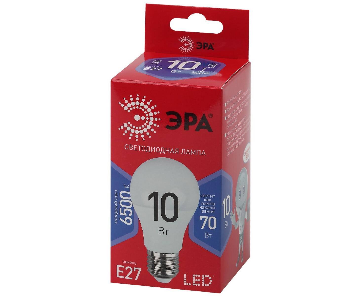 Лампа светодиодная Эра E27 10W 6500K LED A60-10W-865-E27 R Б0045324