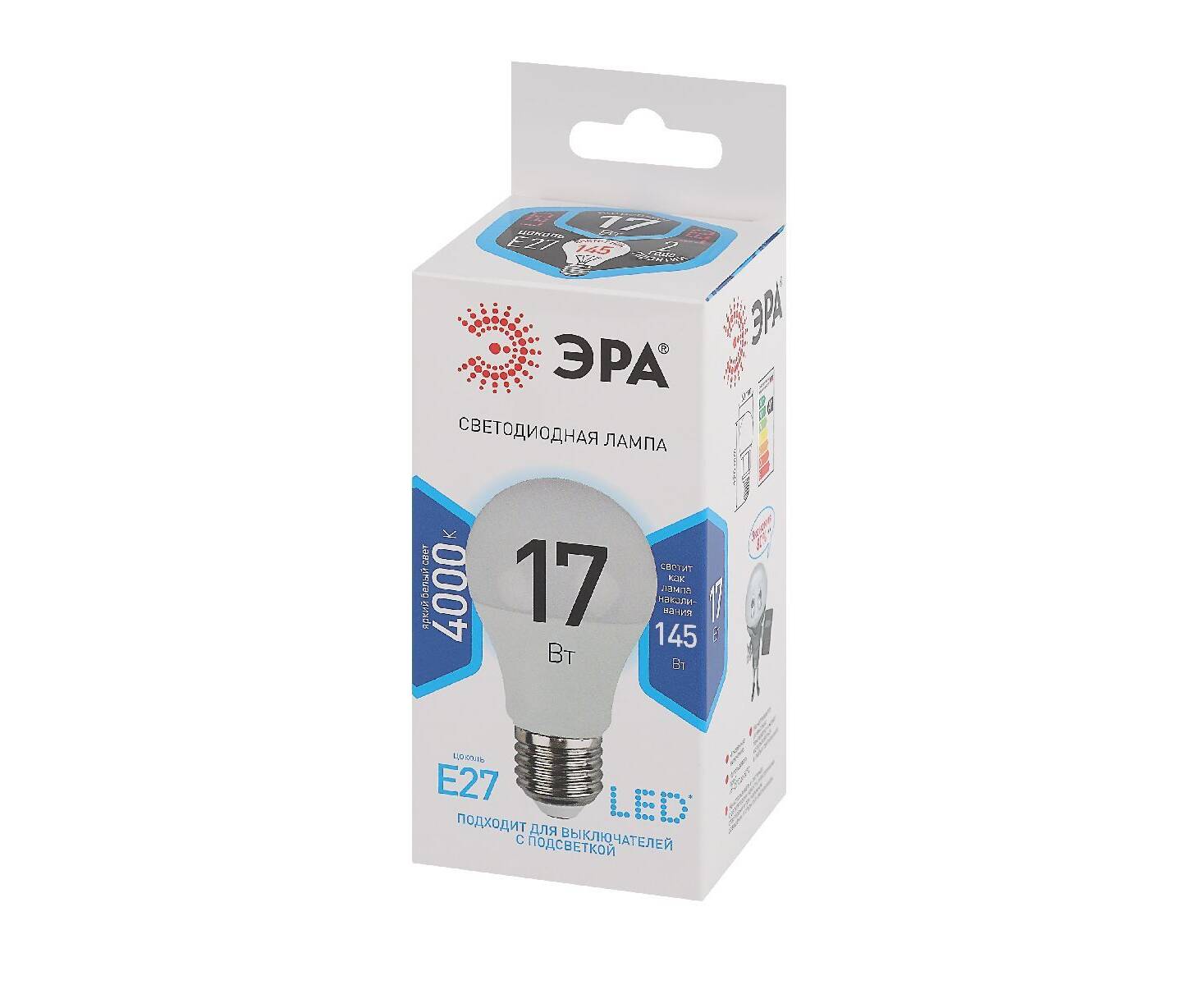 Лампа светодиодная Эра E27 17W 4000K LED A60-17W-840-E27 Б0031700
