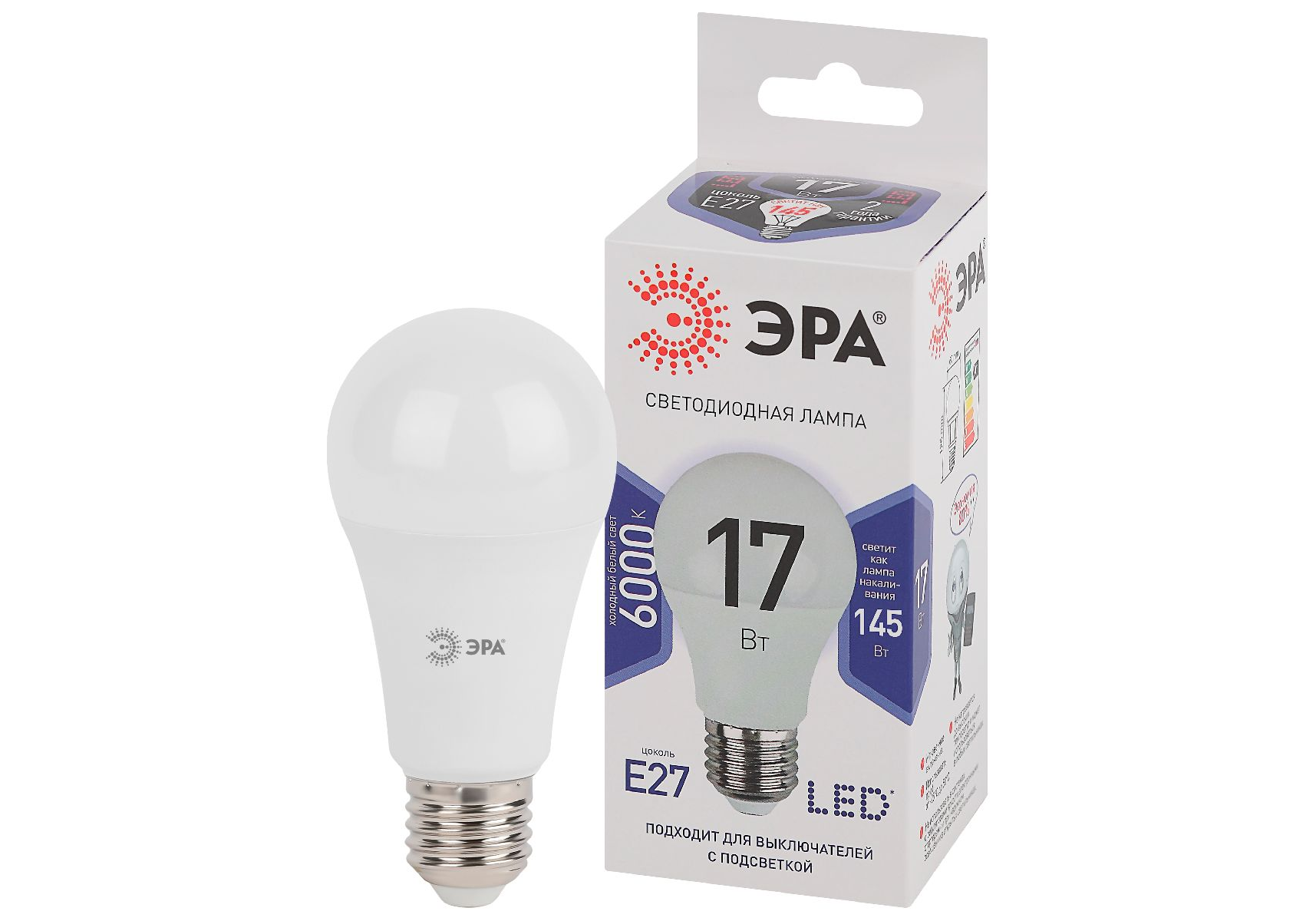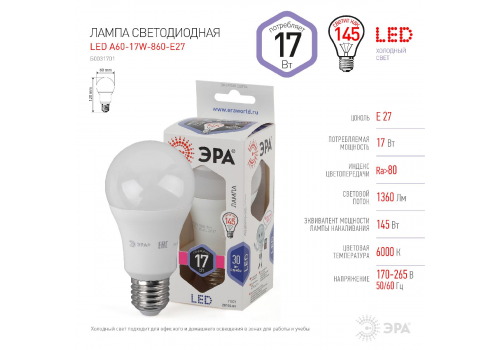 Лампа светодиодная Эра E27 17W 6000K LED A60-17W-860-E27 Б0031701