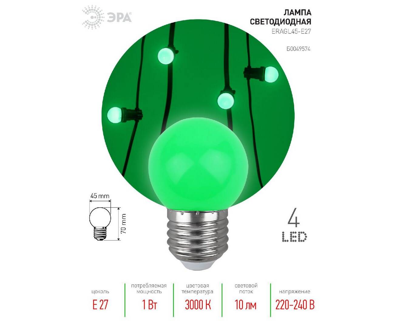 Лампа светодиодная Эра E27 1W 3000K ERAGL45-E27 Б0049574
