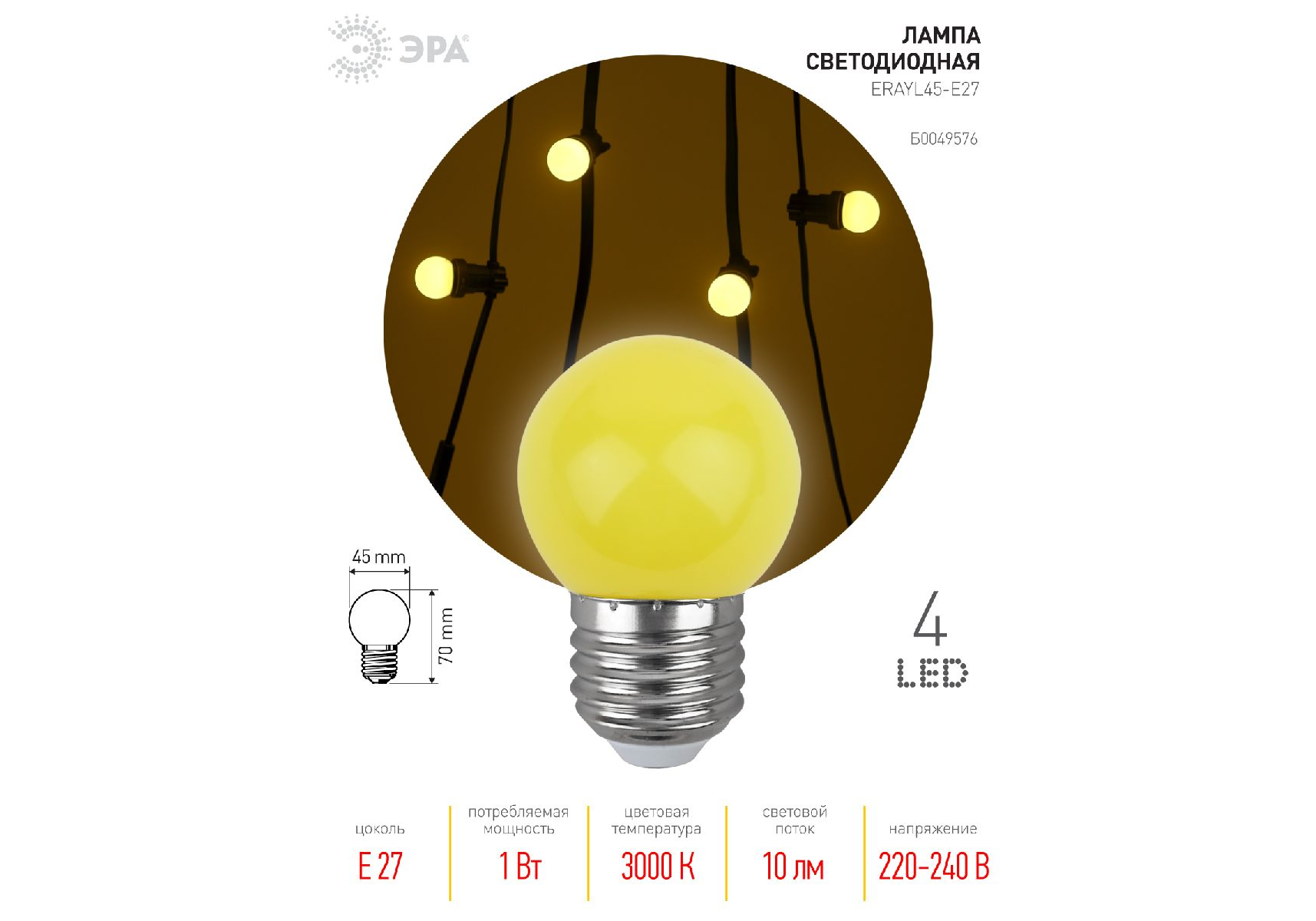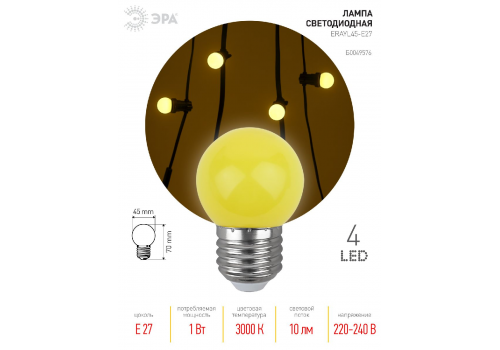 Лампа светодиодная Эра E27 1W 3000K ERAYL45-E27 Б0049576