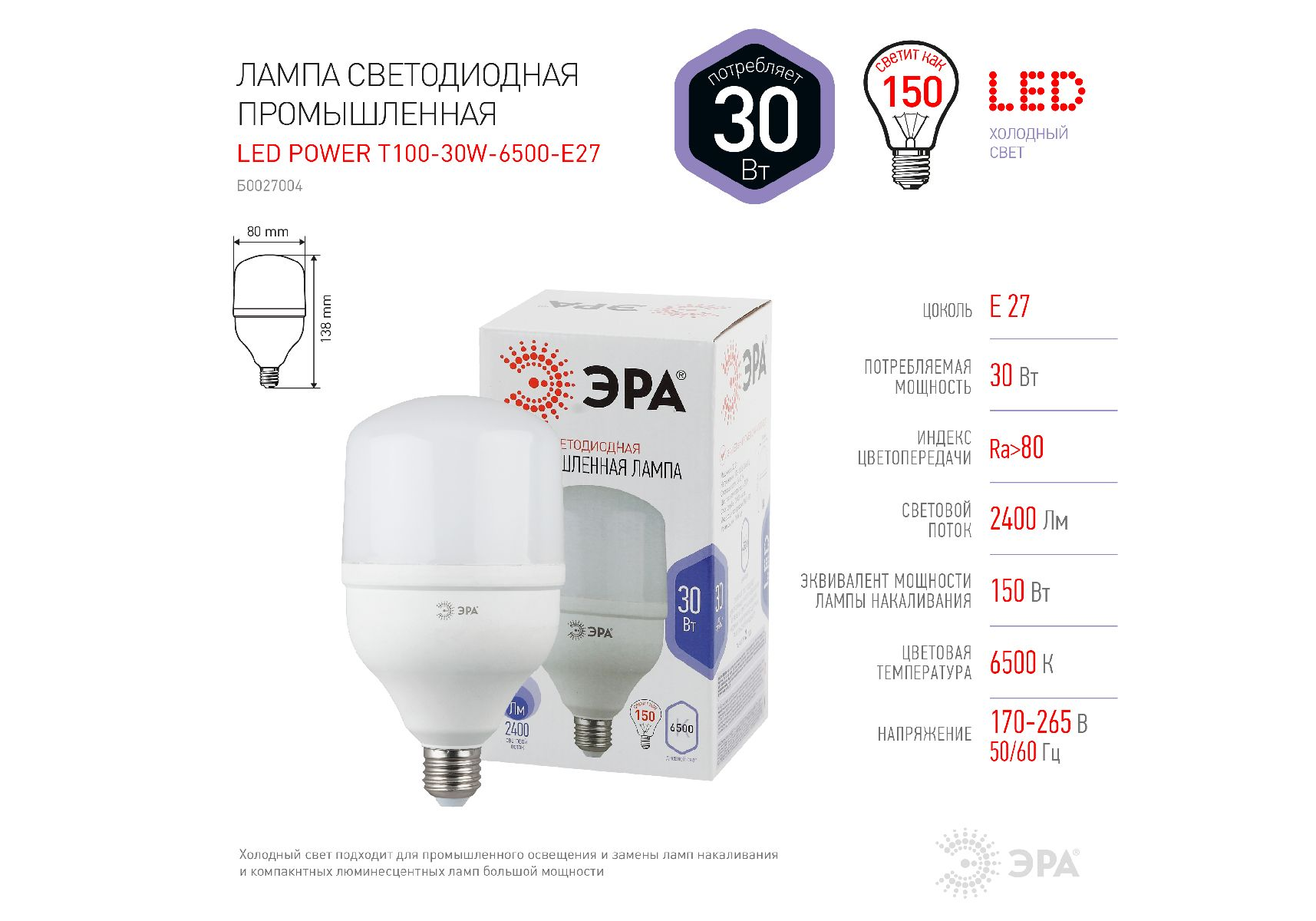 LED POWER T100-30W-6500-E27